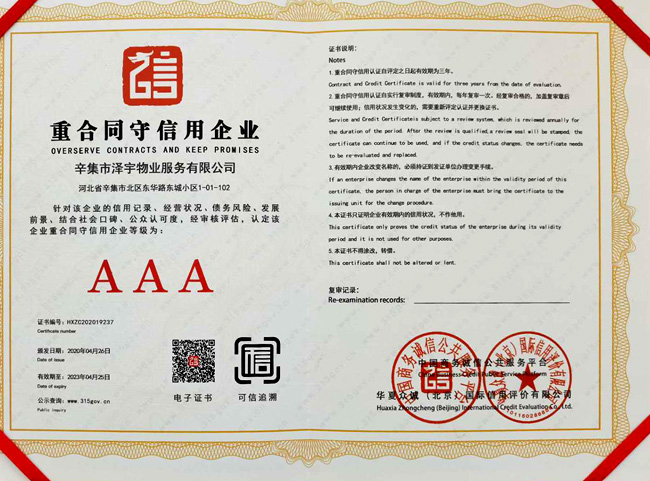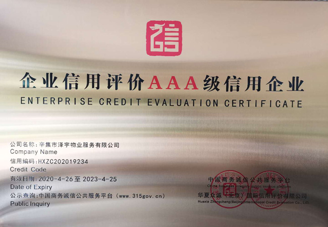 企業(yè)信用評價(jià)AAA級信用企業(yè)